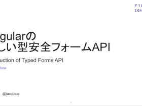 こんにちは、Angularチャンネルの発表をさせていただきますlacolacoです。よろしくお願いします。今回お話するのは、Angularの新しい型安全なフォームAPIについてです。