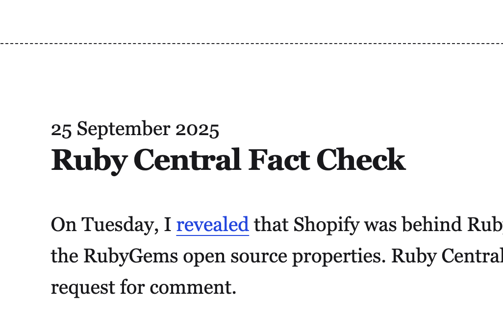 - 財政的影響力の行使:Ruby Centralは資金面でスポンサーに依存しており、大口スポンサーであるShopifyが出資を条件に発言力を強めた可能性。