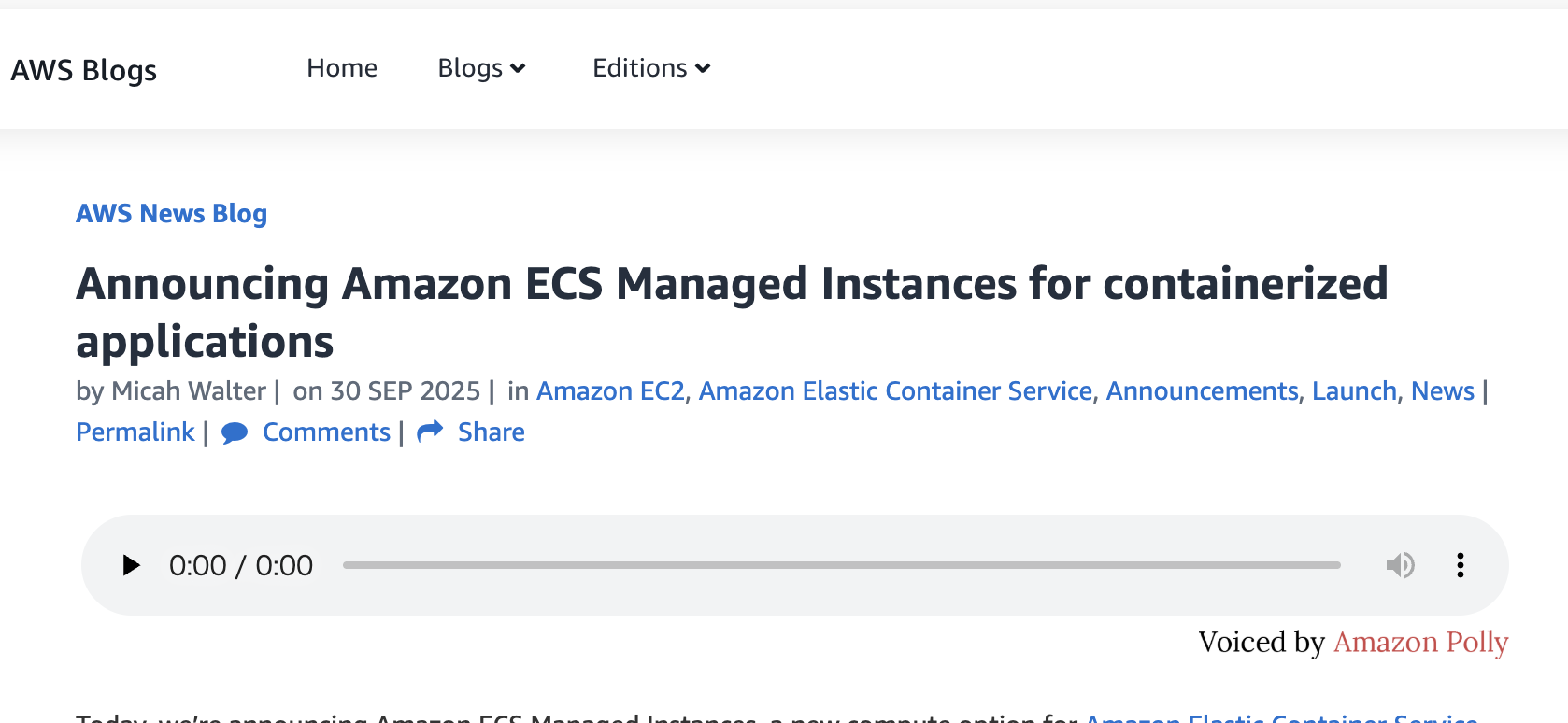 10月1日、AWSが「Amazon ECS Managed Instances」を発表した。