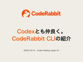 Codexとも仲良く。CodeRabbit CLIの紹介 DRANK Codex Meetup Japan #1の発表資料です speakerdeck.com 5 days ago Related Topics: arrow_back open_in_new Open page https://speakerdeck.com/moongift/codextomozhong-liang-ku-coderabbit-clinoshao-jie