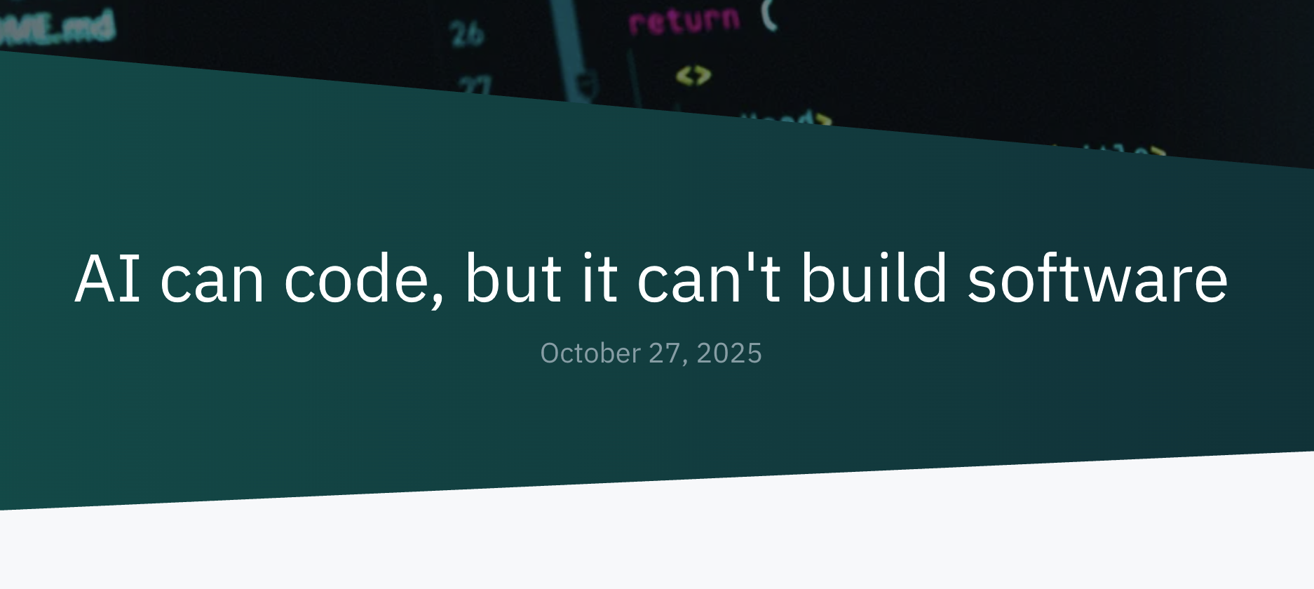 10月28日、Matias Heikkilä氏が「AI can code, but it can't build software」と題したブログ記事を公開し、話題を呼んでいる。この記事では、生成AIがコードを書くことはできても、ソフトウェアを構築することはできない理由について詳しく紹介されている。以下に、その内容を紹介する。