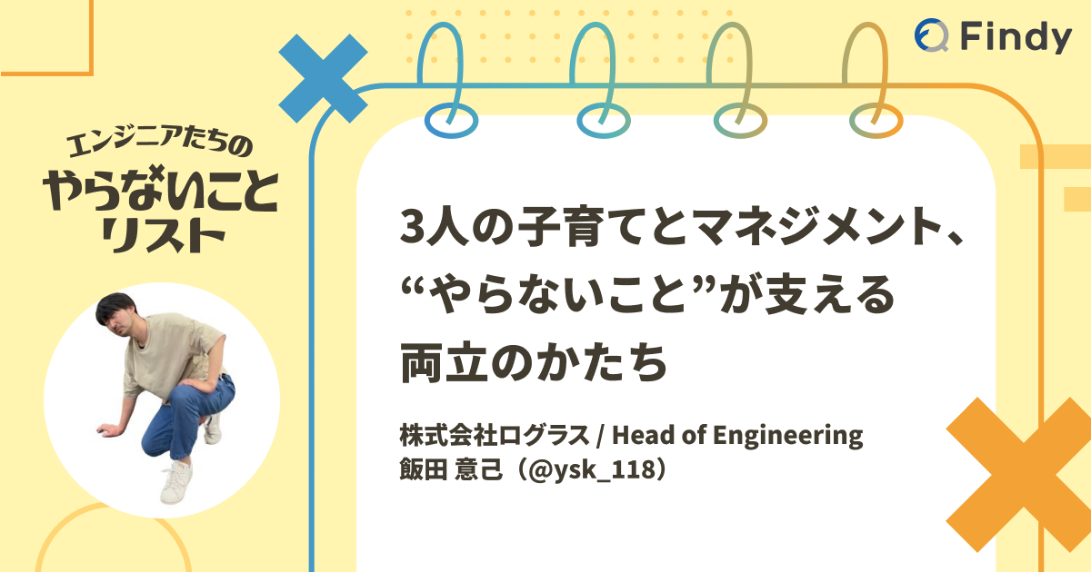 エンジニアのマネジメントと3人の子育てを両立するログラス Head of Engineeringの飯田意己さん。限られた時間で成果を出す「やらないこと」の見極め方とワークライフバランスの整え方とは?