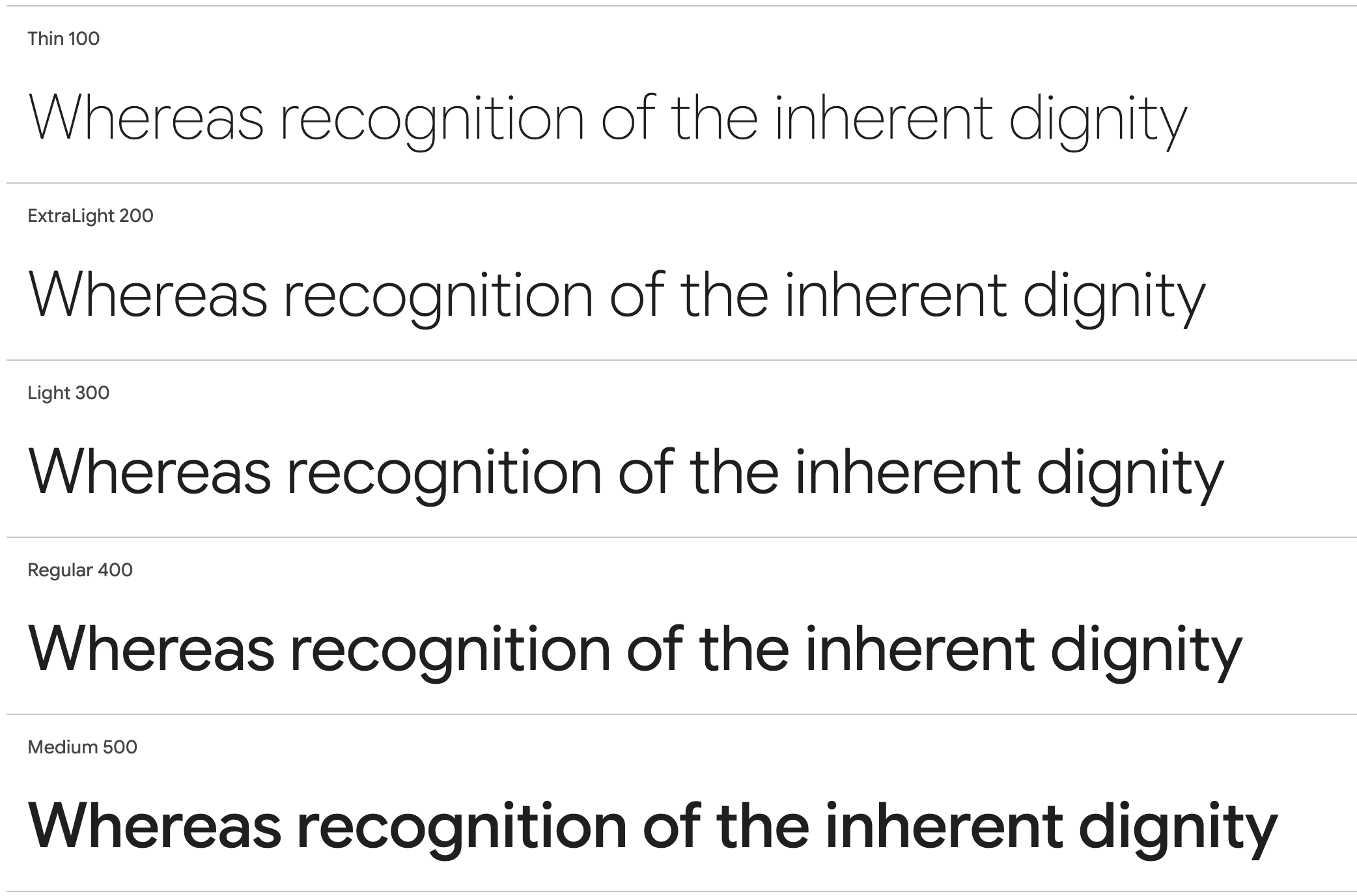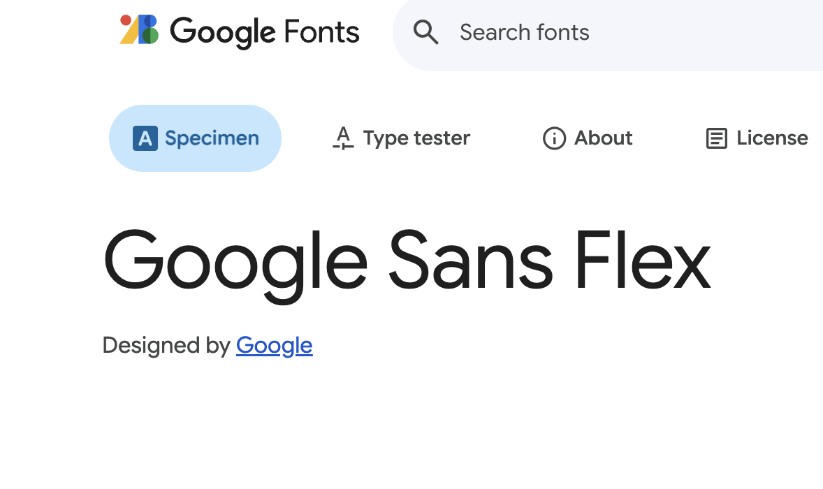 Google Sans Flexは2023年に初めて導入されたフォントで、Material 3の“Rounded”バリアントの基盤としても利用されている。Google自身はこれを「Googleブランド向け次世代フォント」と定義しており、 サイズやスケールに応じて文字形状が変化する 可変タイプフェイスであることを特徴としている。