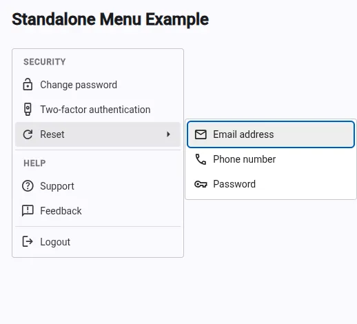 複数階層を持つメニューなど、複雑な UI も構築でき、Signal ベースの仕組みと最新の Angular ディレクティブが内部に採用されている。