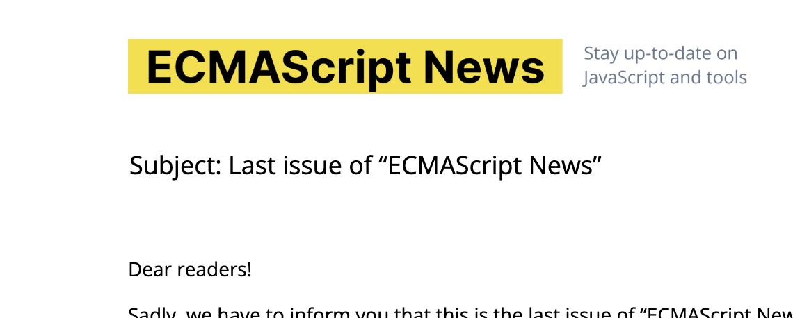11月28日、ECMAScript Newsが「Last issue of ""ECMAScript News""」と題した記事を公開した。この記事では、ECMAScript関連ニュースレター「ECMAScript News」が最終号を迎えるに至った経緯と今後の見通しについて述べられている。