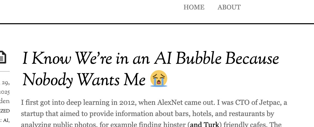 詳細はI Know We’re in an AI Bubble Because Nobody Wants Me 😭を参照していただきたい。