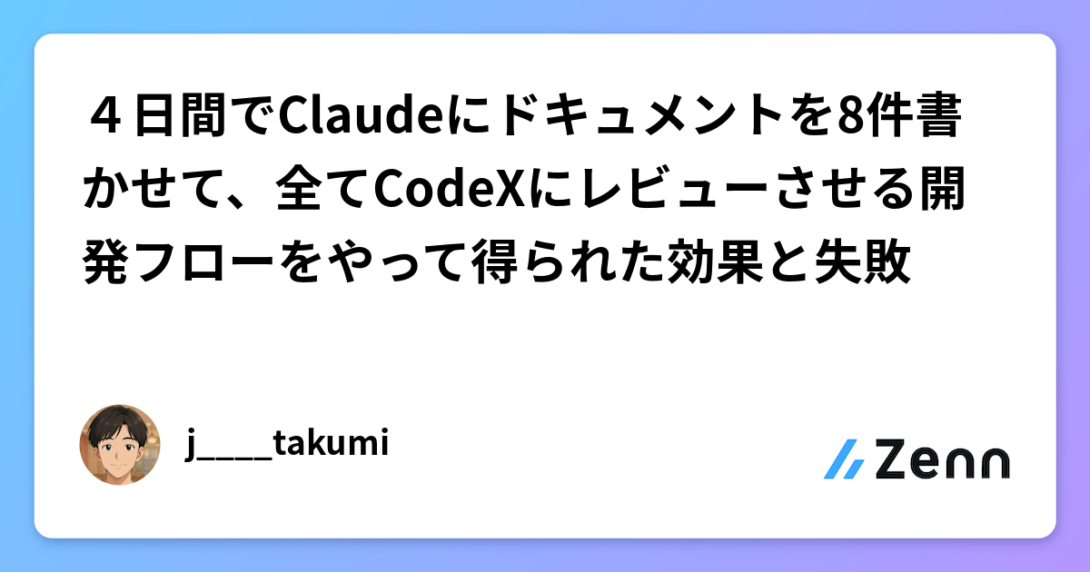 4日間でClaudeにドキュメントを8件書かせて、全てCodeXにレビューさせる開発フローをやって得られた効果と失敗