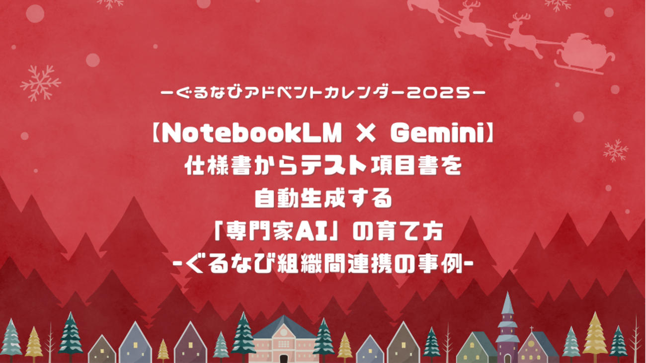 【アドベントカレンダー2025】【NotebookLM × Gemini】仕様書からテスト項目書を自動生成する「専門家AI」の育て方 -ぐるなび組織間連携の事例-