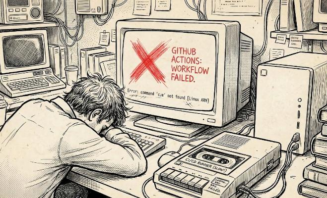 他の3つが成功する中、なぜかLinux ARMだけが「コマンドが見つからない」と悲鳴を上げた。原因は、GitHub Actionsが親切心から、arm64ランナーに対してx86_64バイナリを隠蔽したことにある。この余計なお節介こそが、著者を終わりのないループへと引きずり込んだ。