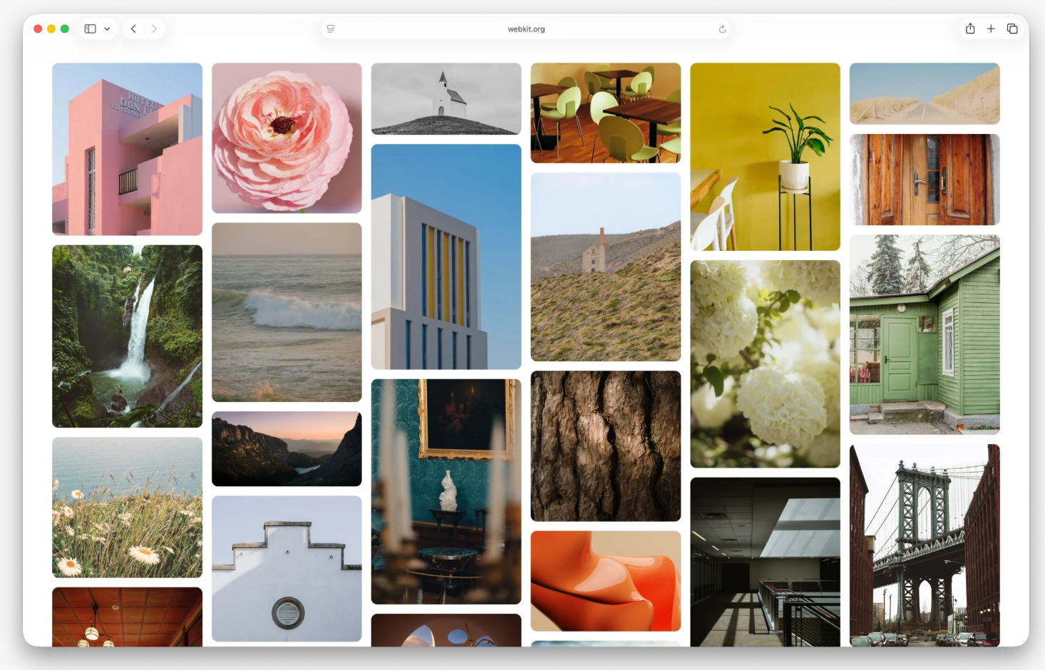 - 柔軟な配置: 列(または行)のサイズを固定しつつ、異なるアスペクト比のアイテムを隙間なく詰め込むことが可能である。