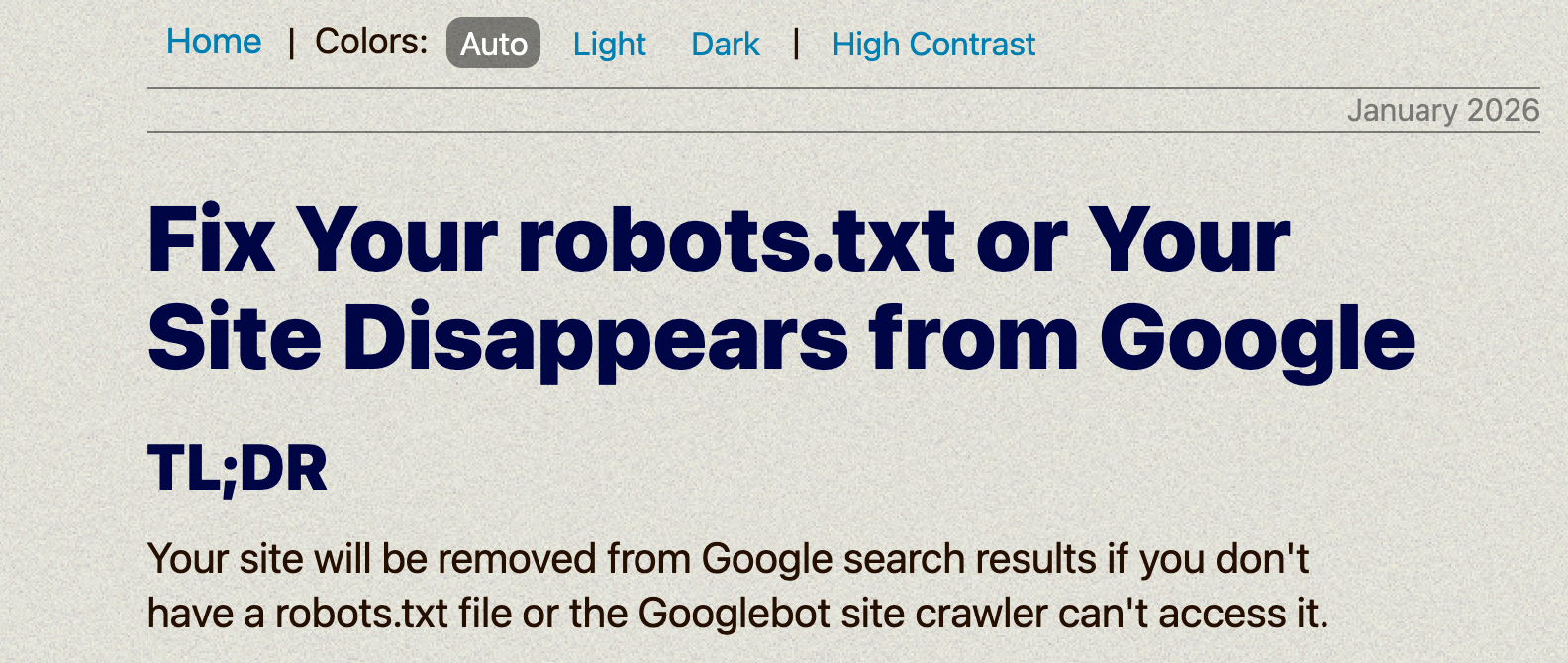 1月20日、Alan W. Smith氏が「Fix Your robots.txt or Your Site Disappears from Google」と題した記事を公開し、話題を呼んでいる。この記事では、robots.txtファイルへのアクセス不可が原因で、ウェブサイトがGoogleの検索結果から完全に消失するリスクと、その技術的な背景について詳しく紹介されている。