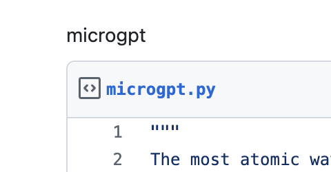 2月13日、karpathy氏が「microgpt · GitHub」と題したGistを公開した。