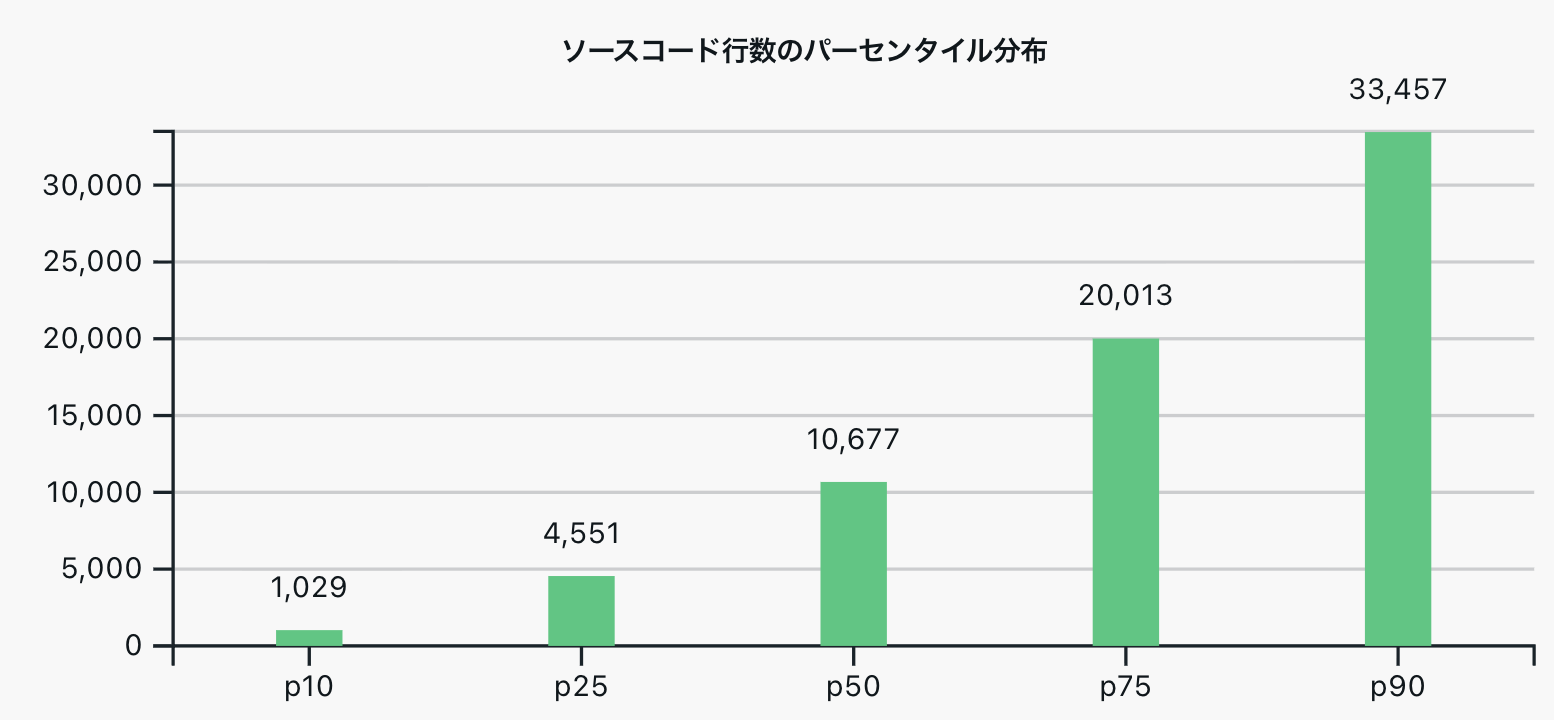 - コード行数 (Source Lines of Code): 「ルール数 + アットルール数 + 宣言数」と定義。大半のサイトは10,000行以下に収まっている。