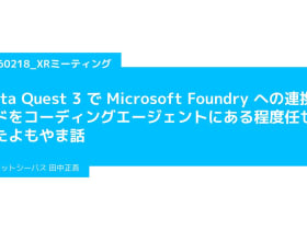 XRミーティング 20260218「Meta Quest 3 で Microsoft Foundry への連携コードをコーディングエージェントにある程度任せてみたよもやま話」の登壇資料です。 ◆スライド内の素材は以下を使用させていただいております。ありがとうございます! ・シルエットデザイ…