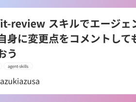 difit はローカルの git 差分を GitHub スタイルのインターフェースで確認できる CLI ツールです。difit-review スキルを使用することでエージェントがコードの変更点にコメントを残した状態で difit を起動できます。この記事では、difit-review スキルを使用してエージェント自身にコードの変更点をコメントしてもらう方法を紹介します。