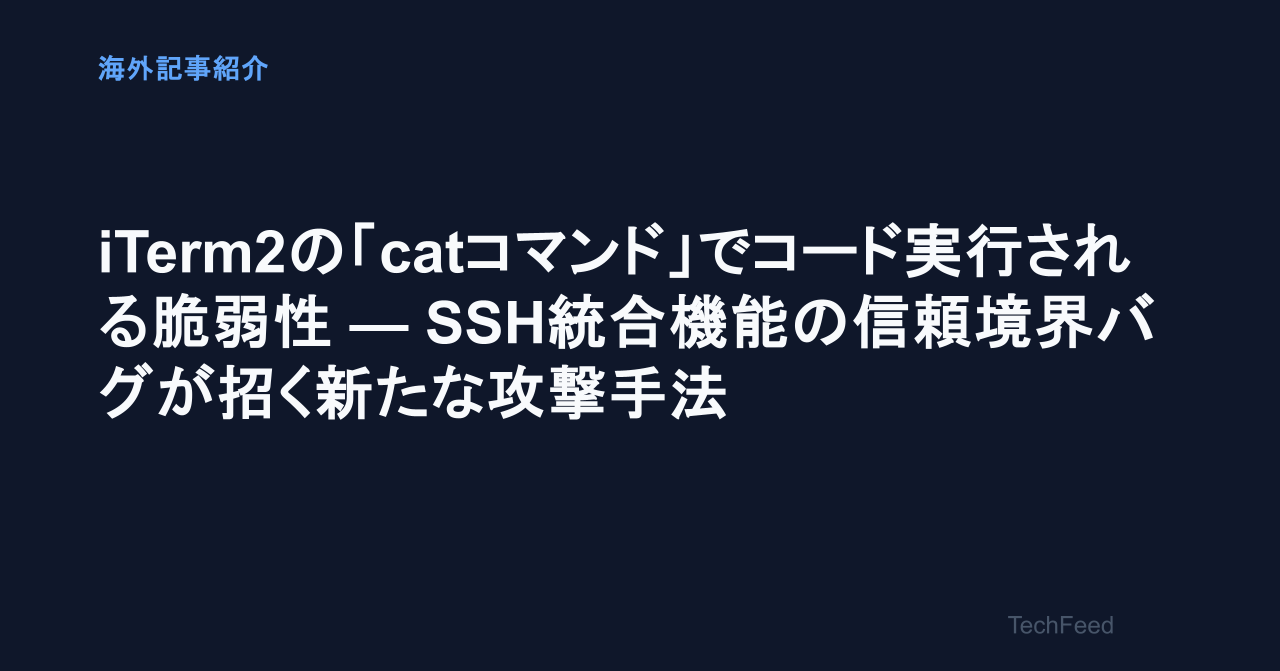 iTerm2の「catコマンド」でコード実行される脆弱性 — SSH統合機能の信頼境界バグが招く新たな攻撃手法