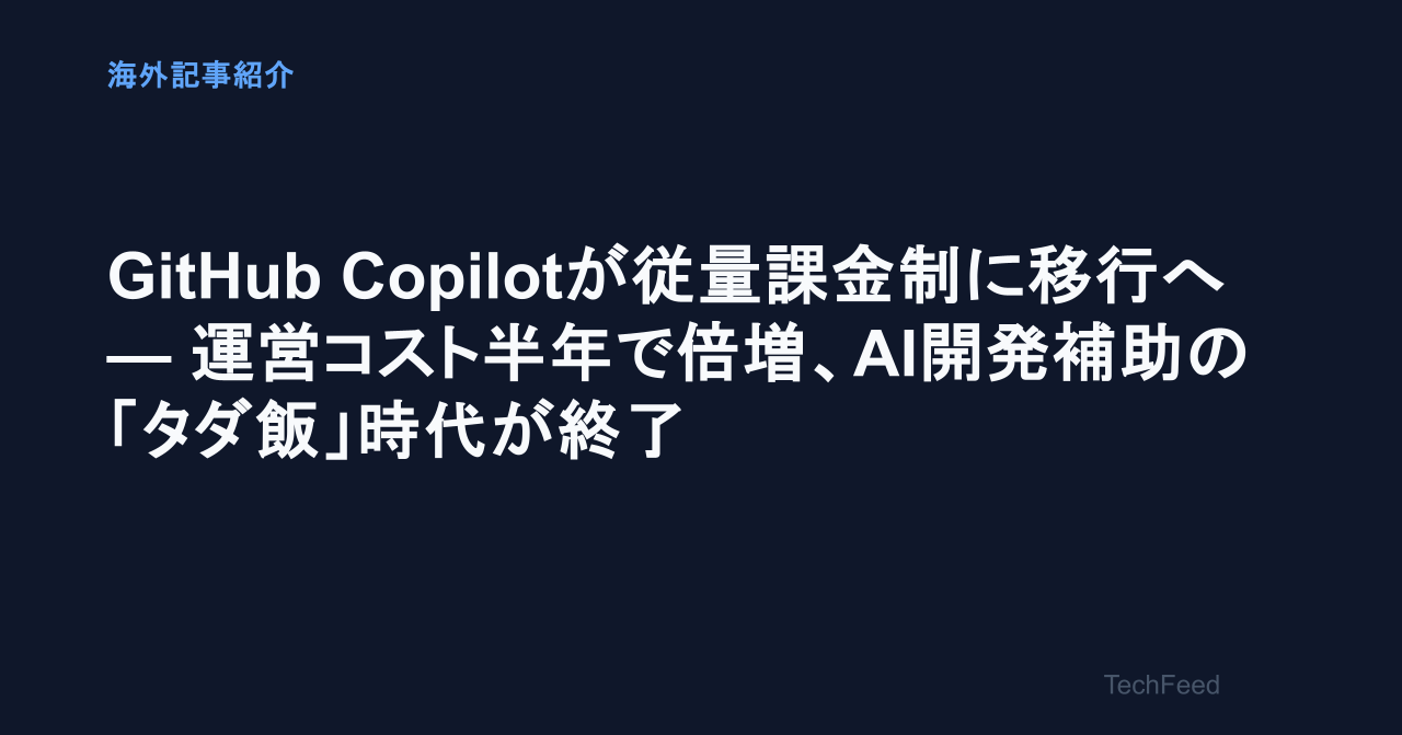GitHub Copilotが従量課金制に移行へ — 運営コスト半年で倍増、AI開発補助の「タダ飯」時代が終了